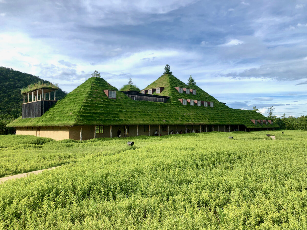 The structure’s whimsical forms and earthy textures echo the hills of Shiga, making it a landmark that’s as much a part of the landscape as the trees and the sky above.